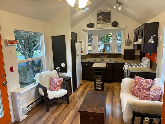 Offer with a Bump Clause in place. This is one of the sweetest homes in Olympic Mobile Village. High Vaulted ceilings, open and great natural light. Kitchen is like a darling nook and the living area is so comfy. Mini-split air conditioning and mounted propane stove for that cozy feeling. Appx 50x100' lot. Covered porch entry, nice sitting area outside and plenty of parking room as well as a slab in place for a storage building if you like. Pets allowed but must stay in the home 2 max, 50 pound limit. Park lease is $520 a month and includes the maintenance of the septic, (was just pumped). Don't miss this affordable loveable home!
