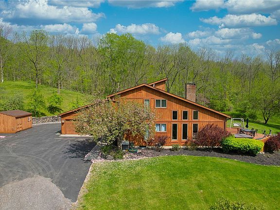 Welcome home to 6063 East Lake Road perched on 18.5 acres overlooking rolling hills and the Southern end of Conesus Lake. This private, contemporary home features 2340 square feet with 4 bedrooms, 2 full and 2 half baths with vaulted ceilings, natural light and a generous wrap around deck overlooking the lake. The updated interior exudes pride of ownership with rich wood, marble and terracotta floors, Cherry Woodmode kitchen cabinetry, granite countertops and a custom coffee and wine bar. There is deeded lake access within walking distance to launch your kayak or paddleboard and swim in gorgeous Conesus Lake! The local attractions of wineries, microbreweries, State parks, hiking trails, fishing and boating, as well as Bristol and Swain Ski Mountains make this the ideal, 4-season retreat in Upstate New York. Enjoy this Summer on the lake and peace of mind with a 1-year HSA home warranty. No delayed negotiations; don't delay! Square Footage is 2,340 per apprasial report (attached).