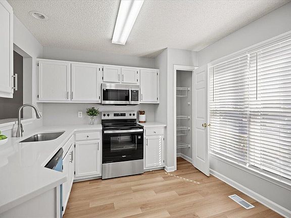 Charming brick townhome in nature lover's Brittany Woods - convenient location minutes to N Raleigh dining & shopping - just a hop over to 70/I40. Roof 2025 and HVAC 2019 - HOA maintains exterior - enjoy low maintenance living! Brand new LVP floors throughout main living area. Kitchen features quartz counters, new SS range/dishwasher/microwave. Two large bedrooms upstairs, each with their own en-suite bath full bath. Third floor flex room would make a great office, workout room, or library! Wooded buffer in back of home. This is a N Raleigh gem looking for a someone to make it their own! Welcome home!