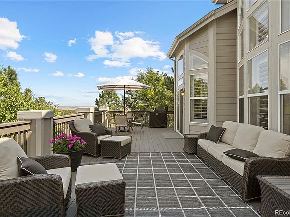 Don’t miss this rare opportunity to own the most sought-after model in Castle Pines, featuring breathtaking Rocky Mountain views and just steps from the pool, parks, and pickleball courts. From the moment your clients enter the foyer, they’ll be captivated by the open floor plan, expansive windows, and abundant natural light. With a sophisticated palette of neutral tones, this home showcases a gourmet kitchen with newer appliances, hardwood floors, and elegant floor-to-ceiling plantation shutters. The main floor includes a luxurious Primary Suite, while the spacious upstairs loft, currently used as a home office, offers versatility alongside additional bedrooms on both levels. The finished basement enhances the home’s flexibility, featuring a guest bedroom suite, family room, gaming area, and an unfinished space for future expansion. Recent home updates include a new roof, new exterior paint, newer appliances and a transferable home warranty. Step outside into a private outdoor sanctuary, complete with mature trees, hot tub, fully fenced yard, covered patio, and stunning colorful Colorado views. Enjoy easy access to the community pool, clubhouse, parks, and a variety of trails perfect for hiking and biking. Located near top-rated public, charter, and private schools, this home also offers a convenient commute with the Denver Tech Center just 20 minutes away, Downtown Denver 35 minutes, and Denver International Airport only 45 minutes from your doorstep. Experience luxury, convenience, and the natural beauty of Castle Pines living.