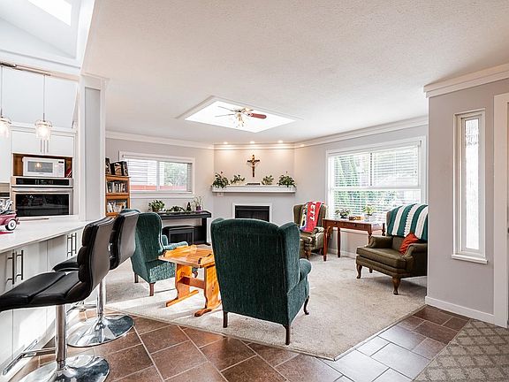 Beautifully updated Cloverdale single-family home featuring a RENOVATED KITCHEN with STAINLESS STEEL appliances, wall oven, QUARTZ countertops and ACRYLIC cabinetry. Fresh paint, lighting and 6 SKYLIGHTS provide bright, natural light throughout the home. Main floor offers a separate living room with a COZY FIREPLACE and an oversized family room for entertainment. There is a Bonus OFFICE/PLAYROOM along with a convenient bedroom there as well. Upstairs includes 3 Large bedrooms and 2 Baths with the Primary bedroom featuring an ENSUITE. Enjoy a spacious FENCED BACKYARD with a covered patio backing onto GREEN SPACE with no rear neighbors. Excellent location—Less than a 10-minute walk to WILLOWBROOK MALL, T&T and the new SKY TRAIN STATION.