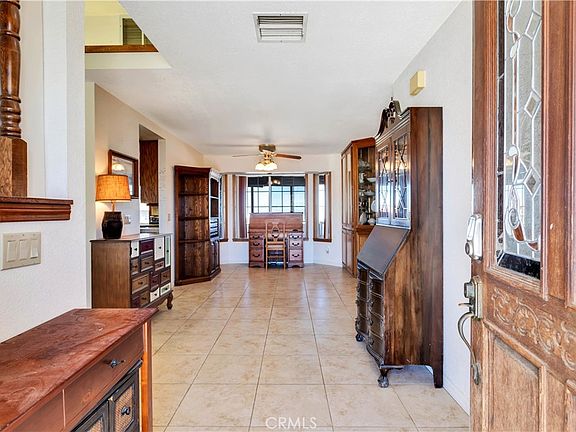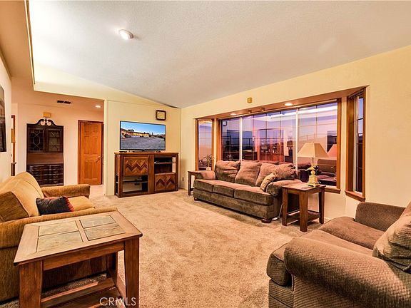 Prepare To Be Blown Away Be One Of The Most Commanding Views In The High Desert! Situated on an oversized .75 of an acre lot and located in one of the most sought after areas of the Hi-Desert rests this 2,165 square foot 3 bedroom 2.5 bathroom home that is truly one of a kind. As you pull up to the driveway of this stunning location you'll be taken back by the surrounding mature landscaping and boulder views! Walking up to the home you'll be coming up with ideas for the massive lot full of potential. Entering through the front door you're greeted by a large and wonderful foyer that has an incredible amount of space for many uses. In the living room natural lighting flows through the dual pane windows, newer carpeting, custom decorative shelving, and even more views through the bay window! On into the kitchen you'll be planning your next dinner! With an abundance of space this kitchen is ready to go and features tile countertops, plenty of cabinet space, stainless steel stove, dishwasher and refrigerator! The spacious dining area is superb and designed with entertaining in mind! tile flooring, ceiling fan, and a stylish pellet stove fireplace centers the room. Each guest bedroom has plenty of space, nice sized closets, mini-splits, and view windows! Stepping in the master bedroom you get even more natural light, ceiling fan, and newer carpeting along with MORE Stunning Views! The master bathroom is fully loaded! Featuring a gorgeous walk in tiled shower, large vanity, tile flooring, and soaking tub designed to take advantage of the panoramic views! Looking for a nice spot to kick back at the end of the day? The oversized sunroom facing east is ideal and also a wonderful spot to catch an epic sunrise! Additional features include whole house evap cooler, NEW septic tank, shed, modified 2 car garage perfect for a home gym, office, yoga/art studio, gated dog run, mini-splits for heating and air conditioning, large private driveway and So Much More! Call today before this amazing property is gone!