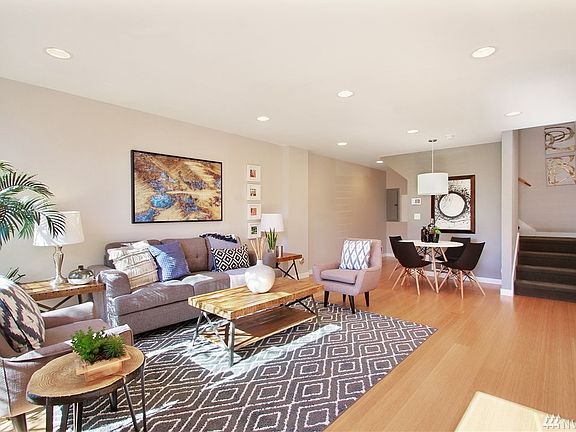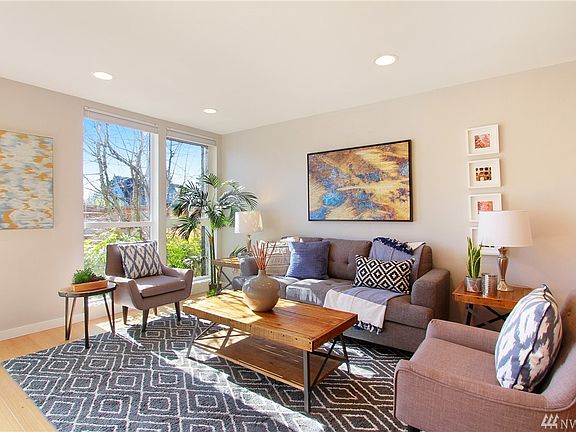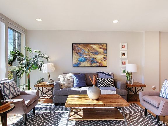 Enjoy the freedom of an urban lifestyle without the complexity of estate maintenance. Great room with open floor plan. Kitchen with contemporary finishes including Bosch cook-top, convection oven, subway tile, quartz counter-tops, and bamboo flooring. Master suite with walk in closet, skylight, master bath, and deck with partial view of the Sound, city, and mountains. Just steps away from boutiques, shops, restaurants, and the bus line. One reserved parking spot.
