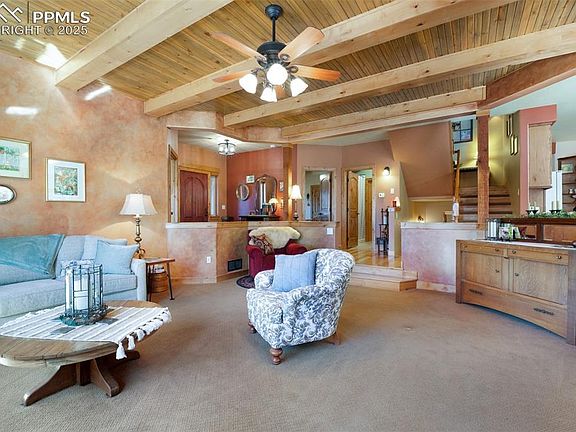 You will feel the difference between a house and a home when you see this Black Forest custom home-the warm atmosphere welcomes you! Set on five treed acres of Ponderosa pines, you’ll feel the peace of being away from the hustle of city living, yet minutes from the necessities of Colorado Springs or Monument. This stucco home is flooded with natural light and every window offers a view of nature. You’ll find custom finishes from solid hickory and oak flooring, custom wood trim finishes, solid wood doors, custom stair risers, beechwood kitchen cabinets and a touch of vintage. The three bedrooms are spacious and oversized giving room for a growing family. Four bathrooms include a master ensuite with a large custom soaking tub to watch the moon rise into the night sky. A cozy den with a vintage oak mantel surrounds a small gas-flame stove keeping you comfortable with the change of seasons. The main living room is perfect for gatherings as the wood-burning stove will ease Colorado’s winter chill and help with heating costs. A beautiful blue-stain pine high ceiling adds warmth as well. A small office or crafter’s room is apart from the main living areas. A second story family room can offer more office space. A lower-level walkout is a great rec room with another full bath and closet. A large unfinished area is ideal for storage or hobby projects, or can be finished to the owner’s needs. There’s a large fenced area for family pets to explore. Under the second story deck, is a completely enclosed area for security and shelter. A fenced garden grows Fall Gold raspberries and a currant bush. A storage shed for tools or projects is always handy. A pergola from milled ponderosas on the property is placed with a stunning view of magnificent Colorado sunsets while sipping a favorite beverage and seated around a firepit. Include this home in your search for a picturesque area of forest living! Located close to elementary school & Black Forest Regional Park trails & recreation.