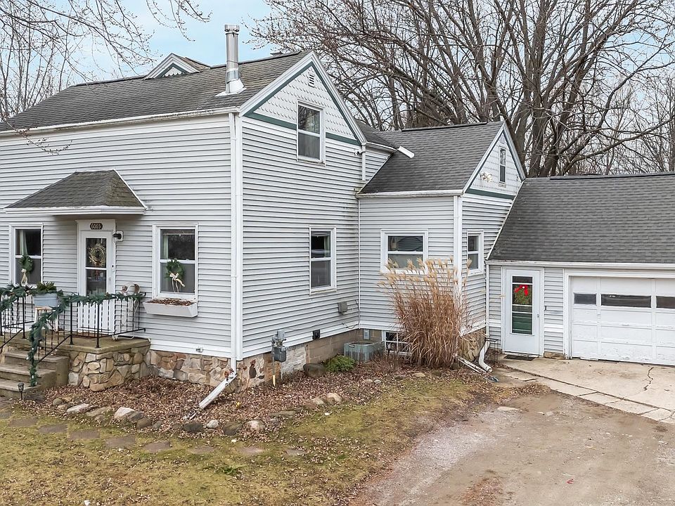 Get out of the city and enjoy the freedoms you've been longing for! A picturesque footbridge crossing a winding creek adds one-of-a-kind character to this 1-acre farmhouse property. Fulfill those deep down homesteading desires with a greenhouse, chicken coop, raised garden beds, fruit trees, tappable maple trees, established raspberries, blueberry bushes, grapes, strawberries, and more! Spacious kitchen with custom-built island, sliding barn doors to pantry and extra storage plus convenient access to the back deck. Primary bedroom with updated ensuite includes stand-alone tub and walk-in shower. Hardwood flooring, built-ins, charming finishes, and warm, tasteful character throughout - don't miss out!