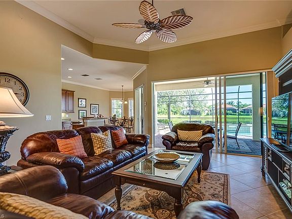 This seasonal home is on a cul-de-sac and is perfect for your vacation!! This open layout home features 3 Bedrooms, 2 Bathrooms, Dining area, upgraded Kitchen, screened lanai with heated pool and spa, attached 2 car garage and more! The Primary Bedroom has a gorgeous canopy bedroom set, large flat screen TV and has sliders that open to the pool area. The attached Primary Bathroom features dual sinks, tiled shower and large soak in tub. There are 2 Guest Bedrooms: one has twin beds and the other a queen bed set with flat screen TV. The Living Room has comfortable leather sofas. There is an entertainment center with large flat screen TV and Bose Ipod player system. The lanai is equipped for the whole family including a large table, 2 loungers, gas grill and pool basketball hoop. This vacation rental has the option of utilizing The Players Club & Spa for a transfer fee of $397.50 including tax, for the entire length of your stay. This facility offers 7 tennis courts, multi-purpose rooms for crafts and social activities, theater room, basketball court, bocce courts, billiards, a resort-style swim facility with a lap and fitness pool, water tot lot, and much, much more. When it comes to diversity and excitement, Naples is the Gulf Coast's premier address, and nothing brings it all home more luxuriously than Lely Resort. Lely Resort is situated on 3,000 acres and offers 3 championship golf courses, running/walking trails, gorgeous lakes and preserves, and a grocery store/shopping center only minutes away. We have 42 beautiful neighborhoods to choose from, including condominiums, villas, and single family homes. Choosing Lely Resort as your vacation destination is sure to bring relaxation and excitement to your life, because it's Where You Live, When You Live to Play! .NO SMOKING - SMALL PET NEGOTIABLE - Trucks must be parked in garage - Lely Resort Policy, no exceptions!