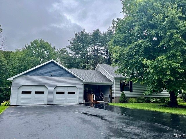 Welcome to this little piece of paradise! Located in the country only minutes from Cortland, Moravia or Groton. Situated on 6.54 acres with privacy setback from road, this 2352 sf 2011 double wide has custom upgrades. Sheetrocked walls, custom built-ins, 3 bedroom and 2 baths, and huge fabulous laundry room complete with cabinets and sink. Also formal living room and family room with wood stove. Set up to provide an inlaw suite! Lovely back deck to relax and watch the wildlife and hummingbirds. Two car garage attached by covered breeze way. A separate pole barn for your hobbies or toys! Don't miss out on this one.