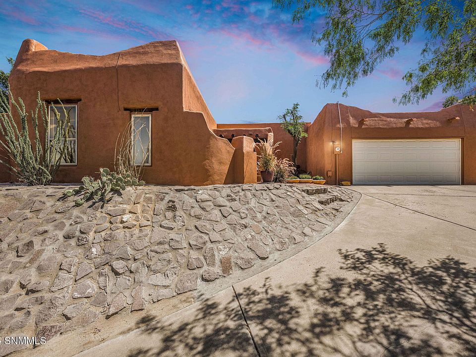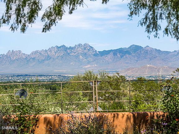 Experience breathtaking valley and Organ Mountain views from the living/dining room, back porch, and primary suite of this 4-bedroom, 3-bath home built by Eddie Chavez on .91 acres. A rare 15x50 inground pool creates the ultimate outdoor retreat, with lush landscaping irrigated by well water. Inside, 2,297 sq ft offers the true flavor of the Southwest with partial adobe construction, 2 kiva fireplaces, and striking wood beam and tongue-and-groove ceilings. The split bedroom floor plan features a 2nd primary suite, a newly updated kitchen with quartz countertops and sink, and a primary suite with mountain views. Recent updates include a 2024 HVAC system, freshly painted exterior, and silicone-treated roof. This home perfectly blends charm, comfort, and iconic Southwest style for everyday living and entertaining.