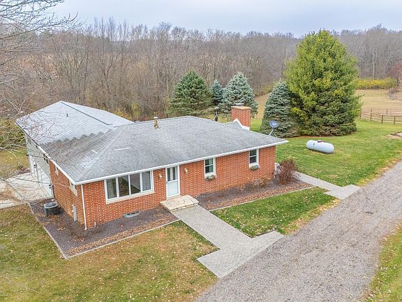 Calling All Horse Lovers!! Beautifully updated ranch with spacious addition, set on 5 acres designed for both comfort and function! The new expansion includes a master bedroom suite, main floor laundry, informal dining area, and a versatile office space — perfect for today’s lifestyle. Step into an incredible kitchen remodel featuring gleaming hardwood floors, quartz countertops, and stainless-steel appliances anchored by a huge walk-in pantry. Designed for entertaining and everyday living, this kitchen is the heart of the home — combining craftsmanship, elegance, and practicality. The finish basement expands your living space. Enjoy entertaining at the bar area, cozy evenings by the fireplace, and the convenience of a full bath. This property features 3 fenced pastures and a 36 x48 horse barn with 4 stalls plus a tack room, perfect for equestrian enthusiasts. A 60 ft pen adds to the versatility for training or recreation. Other amenities include a 3-stall garage with an additional 1-stall workshop for projects or extra storage, whole house generator and deck overlooking property.