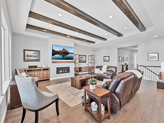 An amazing moment awaits as you enter for the first time-- jaw-dropping 10 foot ceilings, walls of windows, and large beams visible in the living room greet guests as they arrive! Beautiful Shaw engineered hardwoods throughout the main level blend style and durability. The open-concept kitchen is a chef’s dream, featuring quartz countertops, stainless steel appliances, a walk-in pantry, and a butler’s pantry for seamless entertaining. The living area stuns with gorgeous exposed wood beams and abundant natural light.