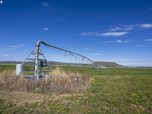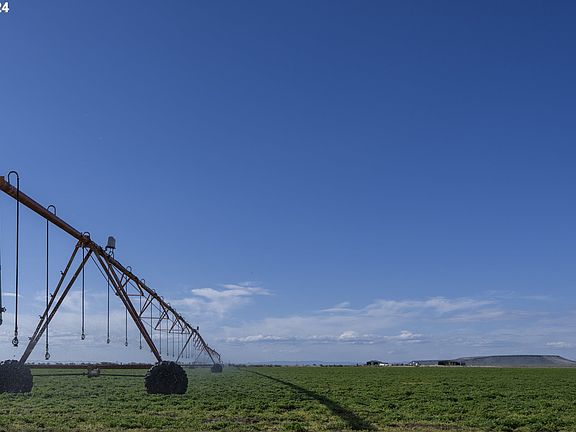 This expansive agricultural property spans 459+/- acres, perimeter fenced for optimal farming. Utilize significant irrigation capabilities, facilitated by 383.1+/- acres of water rights sourced from three permitted wells. The land is currently productive, with fields of Alfalfa, Grass Hay and Oats, anticipating yields of about 5 tons per acre. Essential to the operation are four pivots, including two Zimmatic pivots, one Valley Pivot, and a 5-tower pivot, utilizing a blend of IWOB and LISA sprinklers. These systems are powered efficiently by two 50 horsepower pumps and one 60 horsepower pump and can be operated virtually through aquaspy.com. Gauge the temp of the water and water level with 3 water moisture meters. Storage needs are well met with a 12,480 sqft hay cover and a grain silo with a capacity of approximately 2-300+/- tons. A 2,448 sqft shop, featuring a partial concrete floor, 220 power, and a partially insulated room, facilitates maintenance and repair of farming equipment. Additionally, a 1976 Villa West Manufactured home, comprising of 3 bedrooms and 2 bathrooms. This property presents a turnkey solution for serious agricultural producers, offering both extensive resources and infrastructure for efficient farming operations.
