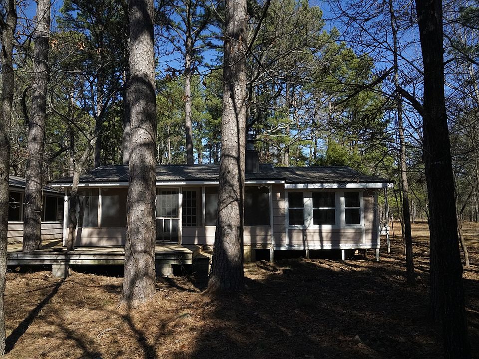 Location: This property is nestled in the heart of the 1.5 million acre Ouachita National Forest Recreational Area. The Winding Stair Mountain Range, Rich Mountain and Simmons Mountain lay North of the Property and the Kiamichi Mountains can be seen in the distance to the south. The North property line is less than ½ mile from the 1.5 million acre Ouachita National Forest, which provides hunting opportunities for whitetail deer, eastern wild turkey, black bear, wild hog and other small game species as well as direct access to an impressive network of AT and horseback riding trails that are operated and maintained by the US Forest Service. The property is located in the small community or Big Cedar, OK. Nearby towns include Hochatown, Talihina and Poteau, which is the county seat. Broken Bow Lake, which offers some of the best fishing in Oklahoma, is only a short 30-minute drive away to the South. Sardis Lake, Cedar Lake and Wister Lake are only a short drive away as well. The Talimena Scenic Drive is five miles North of the Cabin. Physical Address: 60664 River Lane; Muse, Oklahoma 74949 Services to Property: Rural electricity, rural water, septic system, rural mail delivery at Hwy 63. Propane gas can be delivered from the nearby towns. Access: This property has legal access by means of a county maintained dirt road. There is a privacy gate at the entrance to the property. This property is located near the end of the county road with very little vehicle traffic. Land: The cabin sits on 2.5 acres (m/l) of level to gently sloping land that is covered with an impressive stand of mature timber that is native to South eastern Oklahoma being mostly mature saw log size native shortleaf pine with a scattering of a diverse variety of oak trees and eastern red cedar. The land is less than 500 feet from the Kiamichi River and the ground contains a deep sandy loam river bottom type soil that is considered very productive. The property perimeter is fenced. Cabin: The cabin was constructed in 1990 according to the LeFlore County Assessor's records and contains about 792 square feet of heated and cooled living area with 1 Bedrooms and 1 Bathroom. The cabin has a wood burning wood stove and window AC units. The cabin sits on an elevated pier and beam foundation. The exterior of the cabin is covered with low maintenance painted hardie board and grey colored sheet metal. Approximate room dimensions below: Living Room: (15 feet x 23 feet) - This room has a vaulted ceiling with exposed wood trusses. Track lighting along center wood beam with two ceiling fan/lights. Wood burning stove in one corner of the living room and double French doors that open to a screened in back porch. The walls are textured and painted drywall with short grey carpet on the floors. Screened-in Porch: (7 feet x 23.5 feet) - There is a screened in porch area facing south toward the Kiamichi Mountain range. Two ceiling fan/lights and French doors that open to the living room. There is a screen door leading to the back yard area. Kitchen: (7 feet x 10 feet) - The kitchen has solid wood cabinets with glass doors, Formica countertops, dishwasher, electric cooktop stove and single stainless steel sink. Bathroom: (5 feet x 8 feet) - Single vanity sink, toilet and fiberglass tub/shower. Textured and painted drywall on walls and ceiling with stained wood flooring. Bedroom: (11.5 feet x 15 feet) - This room has a vaulted ceiling with exposed wood trusses. Ceiling fan with lights. There are bench seating areas by both windows. The walls and ceilings are textured and painted drywall with short grey carpeting. There is a door leading to the sunroom area. There is a window ac unit in this building. Sunroom: (7 feet x 11.5 feet) - There is a nice sunroom that is connected to the bedroom. This room has short grey carpeting and could be used as additional sleeping space if desired. Laundry Room: (7.5 feet x 7.5 feet) - This room has washer and dryer connections and wall shelving. There is a door that opens onto the wood deck that wraps around one side of the cabin and the shop building. Shop Building: (24 feet x 40 feet) - There is a nice shop building beside the cabin with wooden deck connecting the two buildings. The shop building has 100-amp electrical service, sink plumbed to rural water and electrical lighting. This area has lots of wall shelving and electrical outlets along the walls. Vaulted ceiling with exposed wooden rafters, elevated pier and beam foundation and plywood flooring. The shop building has a window ac unit and two sets of doors. Garage: (16 feet x 24 feet) - There is a garage connected to the shop building with 8 foot wide x 8 foot tall automatic garage door and 3 foot walkthrough door. The garage has concrete flooring and vaulted ceiling with exposed trusses. This is a great area to store ATV's, mowing equipment and small hand tools. Agent's Comments: This cabin is located in a very remote and secluded setting nestled in the beautiful mountains of Southeastern Oklahoma. The Ouachita National Forest is less than ½ mile from the property which provides recreational opportunities for everyone's interests. This could be used as a weekend getaway cabin or even a full time residence.