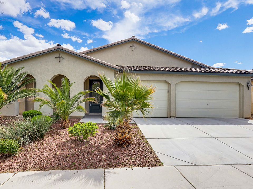 Stunning single-story home in gated Carson Ranch in the Northwest. This home features 4 bedrooms, 2 ½ bathrooms and a 3 car garage. Home has formal living room and dining room. Gourmet kitchen has it all. Beautiful cabinets, custom counter-tops, double ovens, built-in microwave, gas cook-top, breakfast-bar, eat-in dining area, and a gorgeous wet bar. Family room with a cozy gas fireplace. Separate laundry room with extra cabinets and a sink. Large master bedroom with walk-in closet. Master bathroom with dual sinks, vanity, spacious tub, and separate shower. Backyard is a desert oasis. Grand pool and spa, patio, and patio cover with plenty of room for entertaining. Easy to maintain landscaping in both the front and backyards. Community includes a park. Contact us NOW for further details and viewing appointments.