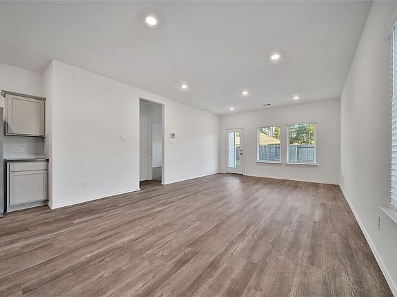 Stylish two-story DR Horton home offering 4 bedrooms, 2.5 baths, and 2,015 sq ft of thoughtfully designed living space. The open-concept first floor features a spacious kitchen with a large center island, breakfast bar, gray cabinetry, laminate countertops, stainless steel appliances, gas range, pantry, and seamless flow into the family room. Luxury vinyl plank flooring, recessed lighting, and a clean neutral palette create a bright, modern feel. The private first-floor primary suite includes an en-suite bath with dual sinks, tub/shower combo, and walk-in closet. Upstairs, a versatile game room anchors three generously sized secondary bedrooms and a full bath, ideal for guests, work-from-home, or play space. Enjoy outdoor living on the covered back patio with a fully fenced backyard and sprinkler system. Attached 2-car garage. Conveniently located near I-45 with easy access to shopping, dining, and Spring ISD.