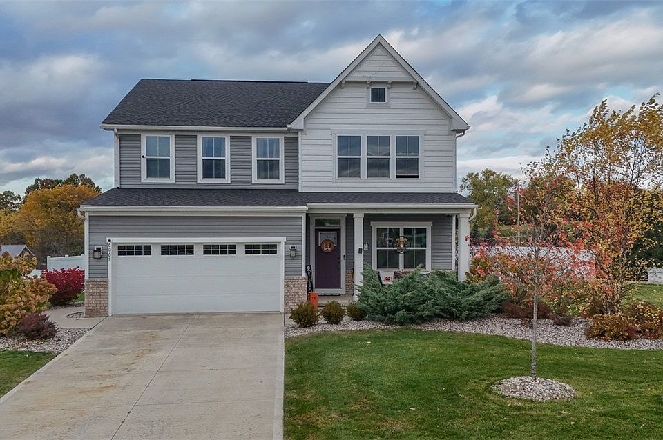 Fantastic home in Bishop Meadows that used to be used as the model! It has all the extras! There is extra parking out front, one of the largest lots in the neighborhood and a fully fenced in backyard with white vinyl privacy fencing. Beautiful landscaping and a covered front porch open to a receiving room with custom bookshelves and window bench! Incredible kitchen with 9 foot ceilings and a 10 x 5 breakfast bar, which is adjacent to the large dining area. The kitchen has crisp white cabinets with under cabinet lighting, pendant lights and granite countertops. Oversized two car garage opens to the back hall with double coat closet, pantry and a half bath. Incredible master suite with a 15 x 7 walk-in closet! The master bathroom has double sinks with solid surface countertops and a large picture window overlooking the backyard. You will also appreciate the oversized walk-in shower and private water closet. Super convenient second floor laundry room with built-in shelving. There are three other spacious bedrooms with ample closet space. Turned staircase has wood treads and lots of natural light. Full basement that's plumbed for an additional bathroom and super easy to finish. Bishop Meadows is minutes from the expressway and centrally located between Canton and Massillon.