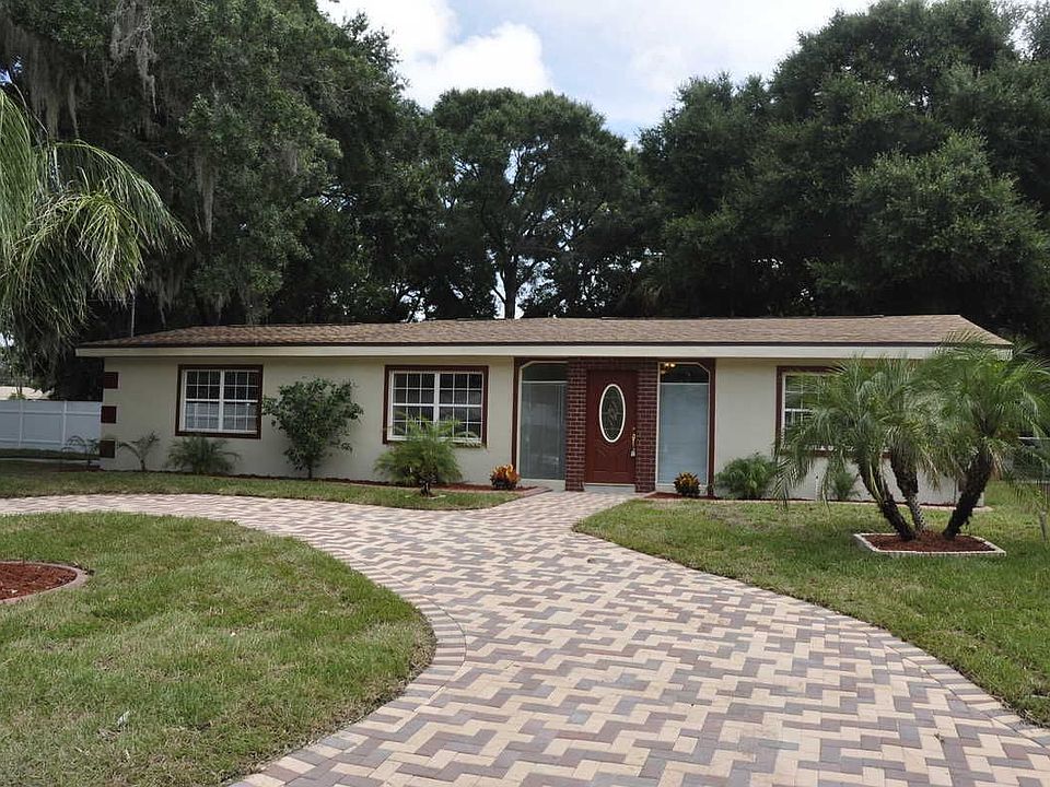 Desirable Location Totally Remodeled in 2011. Permits pulled for all remodeling. 3 dimensional lifetime roof, 13 S.E.E.R. a/c system, brick circular driveway and concrete driveway. It has 2 separate a/c systems to save energy. Totally new kitchen with new plumbing, electric, granite countertops, and $1500 "clean steel" refrigerator. Master bathroom has cathedral ceilings with a huge closet, double sinks and a separate shower and bath tub. Living room has cathedral ceilings and new tile floor. There are 6 fans, doors, crown moldings, and base moldings all new. This house sits on a fenced double lot with beautiful oak trees and a large shed in the backyard. The swimming pool is extra large with a birdcage screen. The front of the house has a partial view of the Cotee (Pithlachascotee) River and located 1/2 block from New Port Richey Park with basketball courts and water sports ramp. Just minutes from downtown New Port Richey shops and dining.