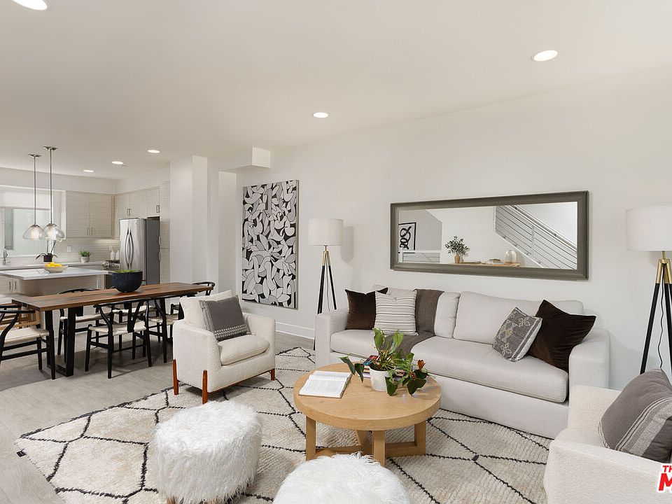 In the heart of Hollywood, this tri-level townhouse blends modern living with the unmistakable energy of the city. Featuring three bedrooms, three and a half baths, and an open, light-filled layout, it delivers effortless style and comfort at every turn.Enter through your private two-car garage into a flexible ground-level space perfect as a home office, den, or ensuite guest room, ready to adapt to your needs.The main level is the heart of the home, boasting nine-foot ceilings, a seamless flow between living and dining, and a chef's kitchen with an expansive stone island made for gatherings both big and small. A convenient powder room and laundry area add to the ease of daily living.Upstairs, the primary suite offers a true retreat with dual vanities, a walk-in shower, and a spacious closet designed for more than just storage. A second ensuite bedroom completes the top floor, giving everyone privacy and comfort.Finally, the rooftop deck steals the show your own private escape for sunset cocktails or quiet nights under the stars. With sweeping views of the Hollywood skyline, Downtown LA, and the Paramount Studio Water Tower, every moment here feels distinctly cinematic.