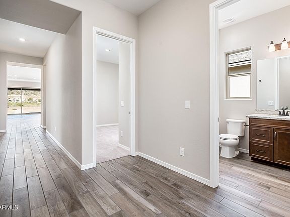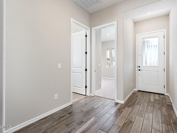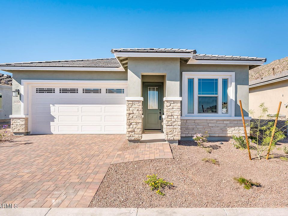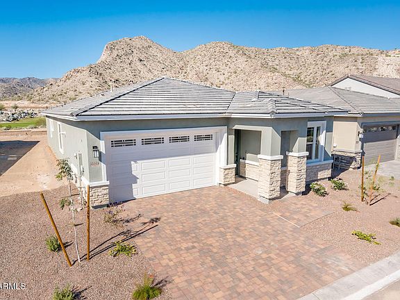 Dramatic mountain, AND golf course VIEWS. This NEWLY BUILT home delivers it all! Located in 55+ Fairways in Victory at Verrado, it offers 3 beds + OFFICE, 2 full bathrooms, 1 half bathroom, and a 2-car garage w/paver driveway. $100,000, in builder upgrades, the interior features tall ceilings, abundant natural light, recessed lighting, neutral palette, and wood-look tile flooring in all the right places. Enjoy the spacious, seamlessly flowing open layout paired with multi-sliding doors that merge the inside & outside activities! The gourmet kitchen boasts quartzite counters, a designer tile backsplash, a pantry, ample cabinetry w/crown molding, an island w/breakfast bar, and high-end SS appliances w/cooktop gas & wall oven. Enter the primary bedroom to find a lavish ensuite with two vanities & a walk-in closet. Secondary bedrooms are adorned with soft carpet. Laundry room contains a sink & cabinetry. You'll love the backyard with a cozy covered patio and STUNNING mountain backdrop, the ideal space for outdoor living! $150,000 lot premium. Fairways in Victory at Verrado offers a vibrant lifestyle with resort-style amenities, including tennis & pickleball courts, scenic walking trails, clubhouse, spa, and a charming vineyard. Residents can enjoy outdoor recreation, social gatherings, and plenty of space to relax, all within a beautifully maintained, active adult community. What's not to like? Make this gem yours!