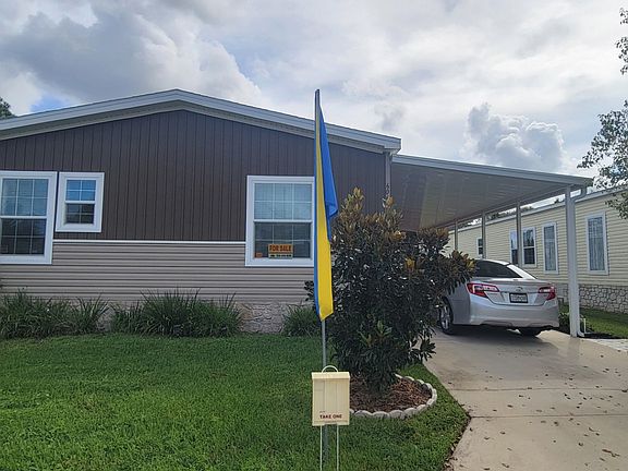 Located in a beautiful and active 55+ Community in Orlando, Florida. This newly listed 2019 3 bedroom 2 bath home can be yours!! Come see all this home has to offer - Primary bedroom has walk in full bath ensuite with walk in shower and double vanity sinks. Bedrooms have carpet and all other rooms have luxury wood plank vinyl. The carport has an extended parking area to accommodate an additional vehicle. The kitchen has updated granite counter tops and all stainless appliances are included in the sale. Walk in pantry right off the kitchen and washer and dryer are also included. There is also a screened in lanai so you can enjoy the outdoor weather Florida offers all year long.