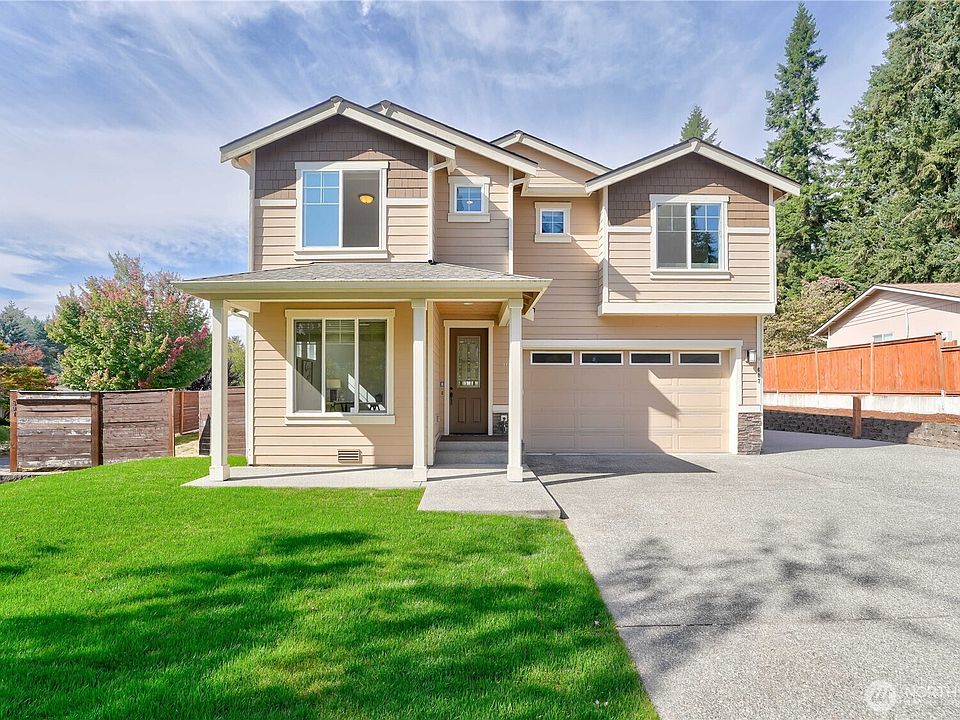 Quality custom 2-story home, on sunny corner lot in Bothell neighborhood. Covered entry with porch, high end finishes throughout including solid wood trims and gorgeous hand sculpted hardwood floors. Functional design, main floor office, formal dinning dinning room, large kitchen with granite counters, stainless appliances, kitchen island opens to a family room with gas fireplace. Sliding door walking out to a huge covered patio and a private yard basking in the sun. House flooded with natural light. Upstairs master with 5 piece bath and walk-in closet, 4 other bedrooms and a full bath. Outstanding Northshore schools, hard to find newer home in a mature neighborhood, a beautiful place to call home!
