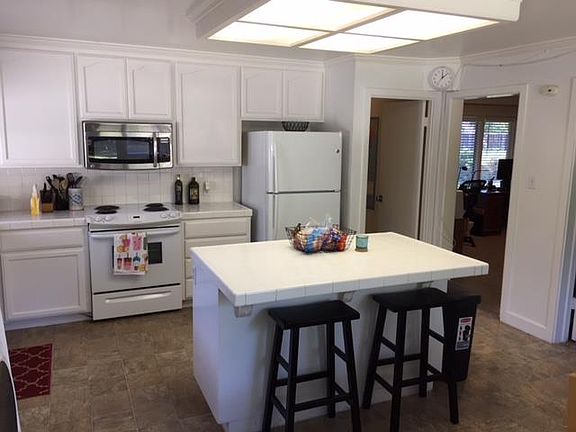 3 Bedrooms, 2 Bathroom with den or office Approximately 2500 sq ft on one third acre Kitchen has refrigerator, stove, dishwasher, microwave and dining area Formal dining room Living room with fireplace Family room Master bath has tub and shower Hall bath has shower Two car automatic garage Huge yard with extra storage and additional garage Walk to Almond Elementary and Los Altos High School Gardener included Pet possible, no smokers Tenant pays water, trash, electric and gas Deposit is $7,000 cashier check Require recent credit report, last two pay period stubs First month rent cashier check One year lease to start