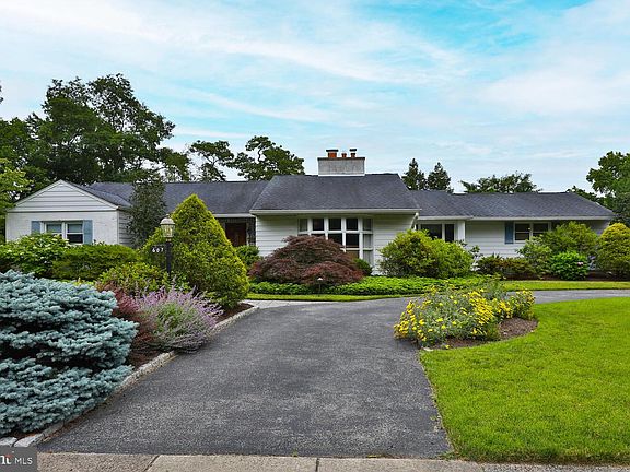Abington Township – beautiful 3 bedroom, 2 ½ bath ranch located in desirable Baederwood on .47 acre of mature trees and plantings. The circular driveway greets you as you pull up and walk to the front door on a paver walkway. The foyer features hardwood floors and leads to the living room with front bay window and a 2-sided stone fireplace (gas) that opens to the formal dining room with hardwood floors. The family room features built-in bookshelves, ceiling fan, a 3rd fireplace (wood) and ceramic tile floors. There are sliding glass doors in the dining room and family room that lead to the rear flagstone patio. A powder room is located off the family room. The updated eat-in kitchen with white cabinets, skylight, gas range, disposal, dishwasher, refrigerator, microwave and granite countertops is beautifully done. The primary bedroom suite offers additional space for a sitting area with a bay window with a window seat, ceiling fan, walk-in closet and primary bath with stall shower. The laundry facilities are located in the spacious primary bath with a door leading to the backyard pool area. There are 2 additional bedrooms (one currently used as an office) and a ceramic tile hall bath with a square tub/shower unit. Additional living space can be found in the finished basement with 5 storage closets, a Bilko door to the outside, wall-to-wall carpet and even a separate workshop area with the gas hot water heater and separate gas hot water (domestic). There is also central air. If you are looking for a gorgeous backyard, this is the home for you. The large swimming pool is beautiful as is the fenced backyard with lovely gardens and 2 sheds. The flagstone patio is perfect for entertaining your family and friends. A 2 car attached garage with plenty of parking in the driveways completes this home. Located in the Award Winning Abington School District, this home is close to the Noble Train Station or Jenkintown Train Stations with easy access to Center City Philadelphia. Minutes from the Baederwood Shopping Center with Whole Foods, Panera and even Trader Joe’s. Quaint Jenkintown shops and restaurants are nearby. If you are looking for a ranch that has been lovingly maintained, this is the home for you! (Please kindly remove your shoes while viewing your potentially new home to help keep the carpets nice)