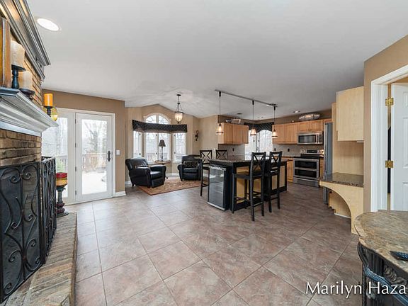 Forest Hills Schools, 5 acres of privacy! Kitchen offers granite counter tops, tile floors, bay window sitting area, eating area, sliders with walk-out to large deck enjoy summer cook-outs, entertaining with friends and family! Deck includes stairs to the lower level patio. Adjacent living room offers:, soaring ceilings, hardwood floors, stately 2 way fireplace and oversized windows, French doors lead to a secluded den. Formal dinning room is located off kitchen. Main floor master suite with custom bath, includes large walk-in closet. Stairs lead to upper level which includes 3 large bedrooms and shared bath. Lover level includes extra large family room, den/or (5th) bedroom, tons of storage space, walk out to patio. Many walking/bike paths locate right on Bailey. Large 3 stall garage. Bonus: Ada Township master plans include an abundance of amenities!