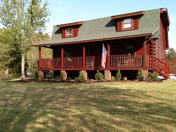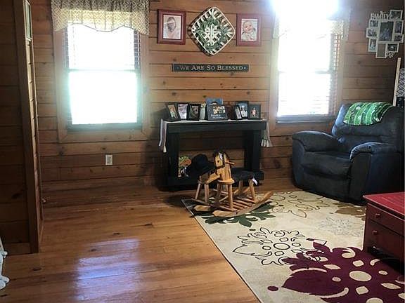 Rare find, beautiful two story true log cabin with pine log walls and ceilings throughout on a peaceful 3.02 acres of land. Yard around house is completely fenced in/ gated and includes approximately an acre of the property. Property could be split into two tracts. One outbuilding will remain with property. Inside you will find the living room/ office area, laundry, kitchen, and dining on the main level. Upstairs are the master bedroom and ensuite with a hall bathroom and two other good size bedrooms. All kitchen appliances will also transfer with the sale. This home had been updated with granite countertops as well. Private setting and located beside a church. If you've ever dreamed of owning a cabin, this one is a must see with the large front porch that is perfect for rocking chairs and enjoying the country life! Make offer.
