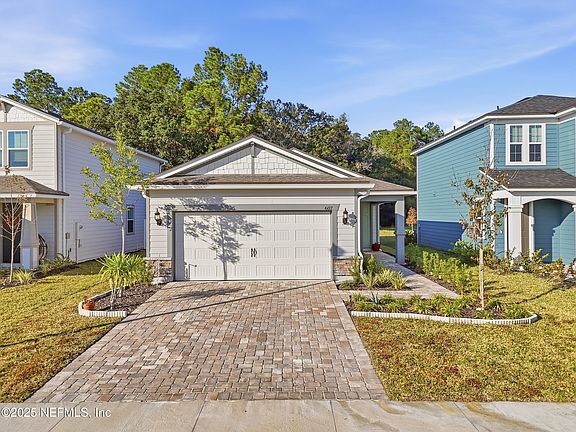 Welcome to like-new living in the Preserve at Bannon Lakes! This 2024 craftsman-style residence, built with efficiency in mind, offers 4 bedrooms, 2 bathrooms and an exceptional style. Step inside to discover a pristine, light-filled interior with post-build upgrades such as fans, lighting and Energy Star appliances. The primary bedroom is a true retreat with a big walk-in closet! Relish the FL lifestyle on the screened patio, overlooking a serene pond - the perfect spot for morning coffee or evening relaxation. A two-car garage and gutters add peace of mind. The community amenities are second to none: a resort-style pool, fitness, clubhouse, tennis, pickleball, a dock, people parks and dog parks. The neighborhood is inviting, offering an active and engaging environment. Location is everything! Enjoy the benefits of A-rated schools and medical systems. Minutes from shops, dining, and an easy 20-minute drive to the glorious beaches of NE FL! This home is move-in ready and awaits you!
