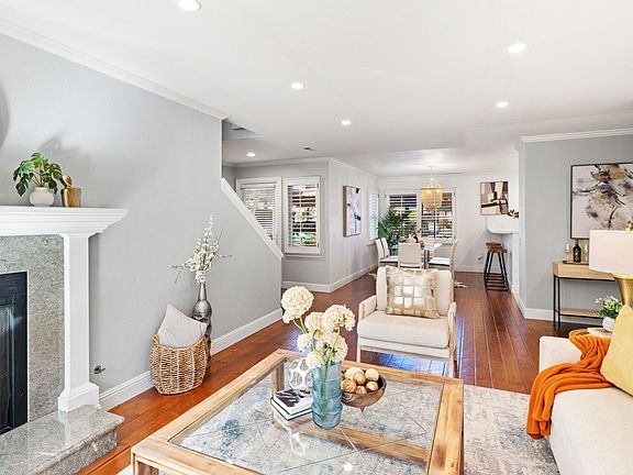 This beautifully updated townhouse, with 2 parking spaces, is located in a peaceful gated complex in the desirable Harbor Bay neighborhood of Bay Farm, renowned for its highly rated schools. Ideally situated near shops, restaurants, scenic waterfront trails, the ferry to SF, South Shore Center, and Park Street, the home offers both convenience and lifestyle. The open-concept entry level features wood floors, and a welcoming living room with a wood mantel and marble fireplace. French doors open to a private patio with new Trex decking, built-in planter box and bench, and additional storage. The extensively remodeled kitchen boasts sleek stone countertops, modern cabinetry, and stylish finishes, making it a true centerpiece for entertaining. Upstairs, the spacious primary suite showcases a luxuriously updated bathroom with contemporary design details. A second bedroom and bathroom provide comfort for family or guests, while the versatile loft area functions perfectly as a family room, home office, or potential guest bedroom. Additional upgrades include plantation shutters and elegant crown moulding. This home blends timeless charm with modern updates in one of Alameda's most sought-after neighborhoods.