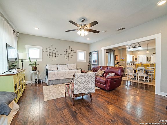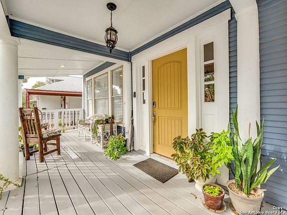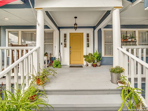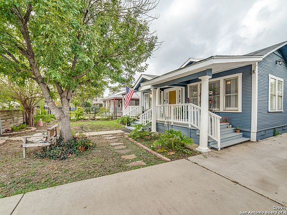 Welcome to Clark Bungalow! Move-in ready 1940s bungalow in the Denver Heights subdivision, part of the SA Community Revitalization Program. This home offers great curb appeal with an oversized front porch and inviting charm. Bright, open floor plan ideal for entertaining. Kitchen includes granite countertops, tile backsplash, breakfast bar, and stainless steel appliances-refrigerator w/filtered ice maker, stove w/convection oven, professional-grade microwave, and dishwasher. Utility room features energy-efficient washer and dryer plus a large-capacity purification system is also a filtration system. and reverse osmosis system (installed 2018). All mentioned appliances convey. Home features 9 ft ceilings, natural light, shiplap accents, and ceiling fans throughout. Roof, attic insulation, and flooring updated in 2018. Ring Alarm Security System with keyless entry and exterior lighting. Back door leads to a large covered deck (built 2020) for outdoor relaxation or entertaining. Yard includes garden beds within a Certified Wildlife Habitat-great for sustainable living. Easy access to I-10 and I-35. Minutes from AT&T Center, Convention Center, Alamo, Riverwalk, The Pearl, museums, parks, and St. Phillips College. Nearby shopping, dining, and VIA bus stop. Additional Notes: Extensive weatherization project completed in 2024 and a new, 5-ton heat pump condenser installed in 2025. Previously operated as a licensed short-term rental. Furnishings/decor available for purchase (info upon request). Oversized lot zoned for multi-family development. RN-4