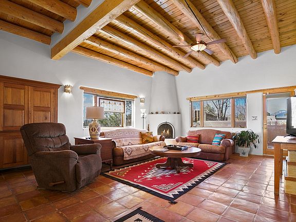 Well maintained, cozy home on over an acre, with shade trees, views of the nearby mountains, and easy access to the Carson National Forest from closeby trailheads. There is obvious pride of ownership in this Southwestern style home which features high ceilings, vigas and Saltillo tile floors. Outdoors there is both a Hot Tub, and a Lap Pool on a raised deck. The backyard is perfect for small group entertainment under the evening sky, either in the open, or under a portal. All adjacent lots are developed, access is very good, but well off high traffic streets. Property size is taken from public records. If a Buyer needs exact lot and building size they should have them professionally measured. Broker and Seller do not take responsibility for property size.