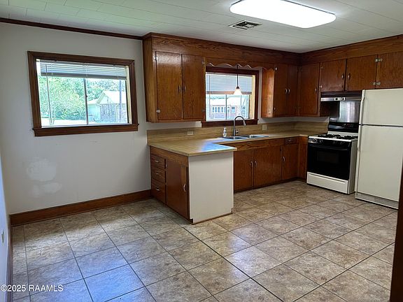 This cute cottage has 3 bedrooms, 2 bathrooms, a 2021 roof, 2015 central air, wood floors, no carpet, a remodeled primary bathroom, large kitchen/dining with a refrigerator and range/oven that stay. The real wood doors are original and in excellent condition. The majority of the windows have storm windows and there is a storm door that allows for lots of light into the living room. There is a covered carport and also a covered patio to enjoy the large backyard. One of the bedrooms has built-ins and a closet for extra storage. The attached 110 square foot laundry room is not included in the living area. Home has never flooded and flood insurance is not mandatory.