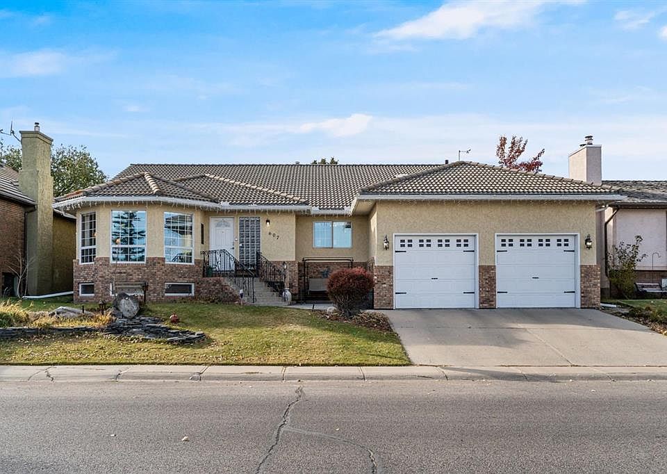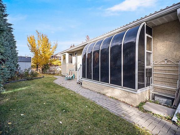 Experience the finest in living with this exceptional, fully finished 2367 sq ft bungalow across the street from Emerson Lake. Immaculately maintained and recently upgraded, this home boasts high-quality finishes, spacious, bright rooms, and a unique, welcoming layout you'll love. The main floor is an entertainer's delight, offering an open-concept living area, a formal dining room, and a cozy family room with a gas fireplace. It features a fantastic sunroom with a curved wall of windows and electric-shade-equipped skylights, plus a functional kitchen with a nook, updated appliances, and plenty of storage. The luxurious master suite is a true retreat with two exits, a walk-in closet, and a newly renovated 6-piece ensuite featuring a spacious glass shower and soaker tub. Two additional bedrooms (one an ideal office) and a dedicated laundry room complete the main level, all updated with new vinyl plank flooring, updated fixtures, and modern hardware. The fully finished basement expands your living space with a huge games room (pool table included!), a bedroom, an office, and a massive workshop/storage area with the comfort of in-floor heating. Outside, you'll find a private, west-facing backyard oasis. Surrounded by a wall of mature spruce trees, the patio offers incredible privacy. It features three water features, landscaping, fruit trees, and a timed irrigation system. Practical extras include a super-sized double attached garage, air conditioning (new furnace/AC), two new hot water tanks, and a concrete tile roof.