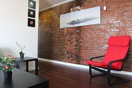 Modern Center City 2nd and 3rd floor apartment boasts 4 large bedrooms. Features exposed brick and hardwood floors throughout. Stainless steel appliances and granite counters. Washer dryer, dishwasher, granite and garbage disposal. Bright and roomy. This is two, two bedroom apartments combined which means you will have 2 living rooms and two kitchens. Loots of SF No fee credit check. Available 9/1. 1st mo, last mo and 1 mo security.
