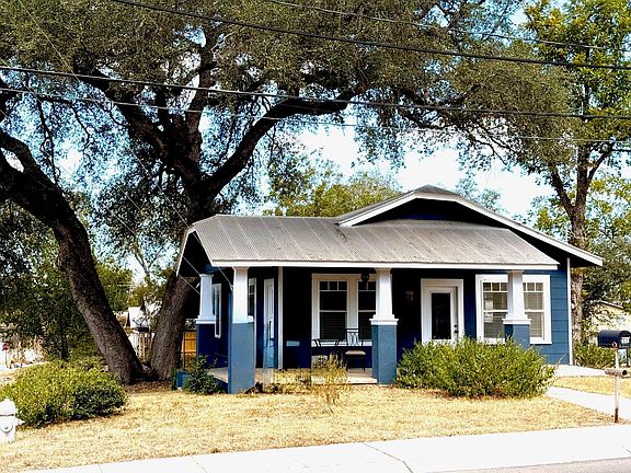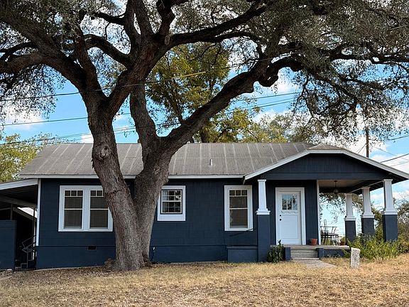 Would you like your new home in central New Braunfels to be walking distance to the Guadalupe and River Acres Park? Or a five- minute drive to the historic Gruene Hall, one of Texas' legendary Honky Tonks? Or near the Comal River, one of the best rivers in Texas for tubing, Landa Park, with a golf course, walking trails? Look no further! This craftsman bungalow home, built in 1929, includes many spectacular details that complement each other. The home is situated on a large corner lot (formerly 2 lots); sits atop a minor hilltop affording long vistas in 2 directions and features a specimen twin live oak that covers and shades the entire home from afternoon sun. Three limestone houses are nearby. The home has two bedrooms and one bath occupying 940 sq. ft. 50x90 open space avail. Additionally, there is a 120 sq.ft. cellar and a 248sq.ft. detached accessory dwelling unit (ADU). The ADU has a washer/dryer, double sink, 2 windows, 2 doors and infrastructure in place to add a shower and commode. A high and sloping double carport connects to the house. This home has a beautiful wrap around front porch with nice views. The interior features 10-foot ceilings. The living room has 5 large windows looking to the east and southeast. They let morning sunlight stream in for dramatic effect.21/2-inch wood blinds throughout the house allow one to modulate this natural light to perfection. There is a thick corrugated steel roof and a concrete sidewalk adjacent and around the entire house. This charming home won't last!