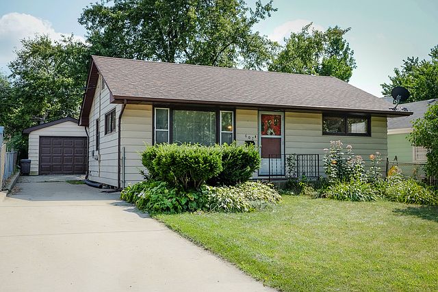 Welcome to easy ranch living in this authentic mid-century two bedroom, one bath home. Large living room with lots of light, kitchen with white cabinetry, double oven, newer cooktop, and ample storage. Bathroom with pedestal sink and beautiful tiled bath surround. Both bedrooms feature hardwood floors, closets, and ceiling fans. Full basement is clean and spacious. Detached one car garage. Landscaped front yard, deep back yard with mature trees ready for your finishing touches. You'll find this one checks all the boxes. Sold As-Is.