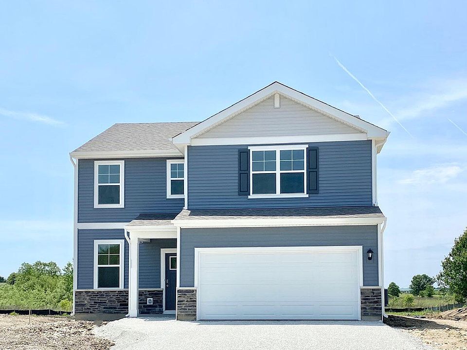 Envision yourself at 607 Ensign Place, Hebron, IN, a beautiful new home in the Park Ridge community. This home will be ready for a summer move-in! The Sienna, is 2-story floor plans features 3 bedrooms, 2.5 bathrooms, a basement, and 1,818 square feet of living space. With a turnback staircase situated away from the foyer for convenience and privacy, a loft area upstairs and open concept design this new home is a popular pick. This open concept floor plan flows seamlessly allowing the heart of the home to feel functional. Entertaining will be easy in this open-concept kitchen and family room layout with a large island with an overhang for stools and designer cabinetry. Additionally, the kitchen features modern stainless-steel appliances, quartz countertops, and easy-to-maintain luxury vinyl plank flooring More flexible space is waiting upstairs in the 2nd-floor loft, offering unlimited potential to suit your needs. Enjoy your private getaway with your large primary bedroom and en suite bathroom with a raised height dual sink, quartz top vanity, and walk-in shower and glass shower doors. Convenient walk-in laundry room, 2 additional bedrooms with a full second bath and a linen closet complete the second floor. Homes include our America's Smart Home Technology, featuring a smart video doorbell, smart Honeywell thermostat, Amazon Echo Pop, smart door lock, Deako smart light switches and more. Photos are of similar home and model home. *Exterior/Interior pictures of similar model*