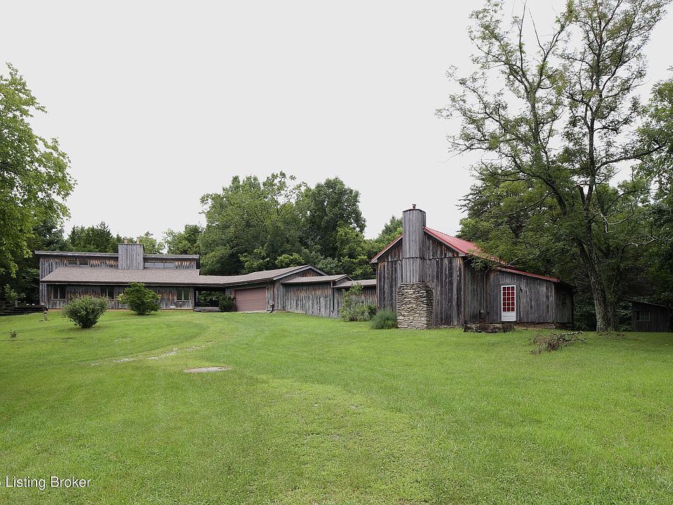 Escape to the tranquility of a former artist's retreat situated on 126 acres above the Kentucky River in Henry County! Designed and built by Vanderbilt-trained architect and artist, A.B. Ryan, this property mindfully blends a modern 2-bedroom, 2 bath home with a historic cabin, set amongst a gentle rolling pasture featuring a pond, original barn and smokehouse. Adjacent to a large Kentucky Wildlife Management tract, wildlife and privacy abound! Old-growth wooded areas allow for timber opportunities, while cleared meadows offer fertile soil for agriculture. Conveniently located between I-64 and I-71, make this your primary residence, quick getaway, event venue, or even short-term rental!