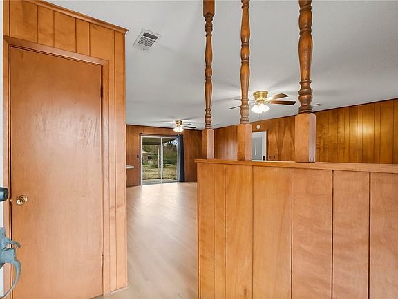 Situated on a stunning oversized lot, the property boasts vibrant crape myrtles in the front yard and mature pecan trees in the back. Very spacious home that is ready for move-in, featuring fresh interior and exterior paint, updated flooring, a recently replaced roof, and storm windows. The covered patio opens to a fully fenced backyard, complete with a storage building. Inside, the open-concept living, dining, and kitchen areas showcase durable vinyl plank flooring and a cozy wood-burning fireplace. Refrigerator is included!
