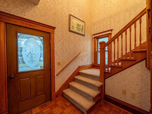 Don't miss your chance to see this home completely refurbished by master craftsman Max Newcomer. This house is redone from being lifted up for the new foundation, to electric, plumbing, roof and everything in between. Roof new in 2023. The features of the original house were maintained with original woodwork, 3 sets of pocket doors, living room fireplace (with gas insert) and stained glass window in the 2 story foyer. Second floor has 2 bedrooms with great closet spaces, a large laundry room plus, at the top of the stairs is a great big open space with 3 windows. 2 bedrooms not enough? This room can easily be finished into one or 2 more bedrooms. Poured concrete, wrap-around front porch is waiting for your chairs or sit on the brick covered patio in your fenced yard. First floor sun room will bring the outdoor feeling inside. The basement is very clean and carpeted and has oversized windows.. You will love the garage with its 3 overhead doors, one of the doors is 9 x 9 for those larger vehicles. The garage is fully outfitted with a walk up area with lots of usable space. 4 blocks to the schools and just a few blocks to downtown and Nash recreation center. This house is ready and waiting just for you.