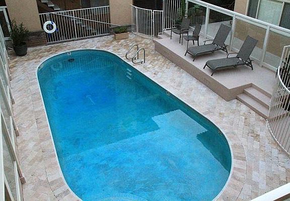 Large 2 bedroom 2 bath apt. which has undergone a major upgrade and is located 1 block from the beach in S. Redondo Beach. In the kitchen and bathrooms, it has granite counters, travertine marble floors, newer sinks, light fixtures, faucets, brushed nickel hardware, etc. There is good looking hardwood flooring in the living room and bedrooms and there is no carpet, Apt. has a balcony with terra cotta flooring. The unit has double paned interior energy efficient vinyl windows. It is in a limited access 31 unit building which has a pool, onsite laundry facilities, and gated subterranean parking. The exterior and common areas of the property have undergone a big upgrade. The building was just painted with good looking modern paint colors, has lovely lush landscaping, and the lobby was redecorated and has a hand painted mural. The monthly rent is $50 additional with a cat