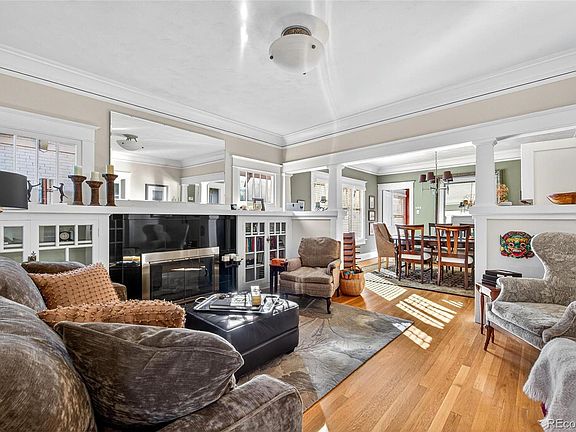 This Cherry Creek/Congress Park bungalow is a beautifully charming 1920s home with all the 2025 updates anyone could want. The quaint, vintage-paned three-season front porch is perfect for a cozy conversation or enjoying your latest book. The warm living room features a gas-log fireplace, and built-in bookcases provide extra storage and display space. Arts and Crafts details frame the dining room. Hardwood floors run throughout the first floor. Crown moldings and tall baseboards in every room add to the home's warmth and character. This 1921 beauty has central heat and air—essential for 2025 weather. The original vintage style suits a transitional design, blending nostalgic charm with modern living. No HOA to increase your mortgage!