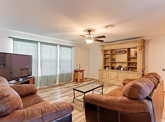 Gently lived in almost new construction smell still! This adorable home was built in 2018! Finish out features hardwood laminate farmhouse style throughout, tile in baths and laundry. Split Bedroom Floor Plan. Neutral paint throughout, spacious kitchen with grey cabinetry and Slate grey appliances. Light fixtures are an oil rubbed bronze with Texas theme throughout. Master features nice size walk in closet as well. This home is beautiful inside and out. Highly energy efficient ! MOVE IN READY!