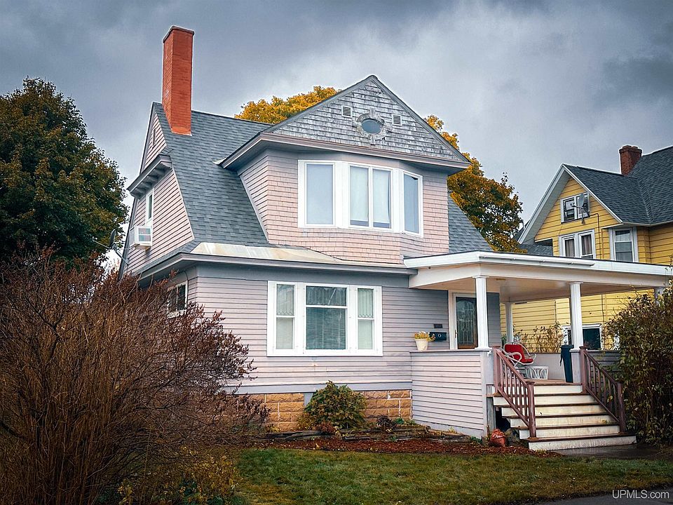 Welcome to this stunning turn of the century Victorian-era home at 607 N. Fourth St. in Ishpeming, bursting with character the large wrap around porch with columns invites you in! Located in a nice neighborhood with sidewalks and mature trees, this property offers a perfect blend of historical charm and contemporary living. With 1,486 sq. ft. finished on the main and second levels, this home boasts a large living room featuring a cozy fireplace, beautiful leaded glass windows, and original gleaming hardwood floors. The unique curved wall and built-in staircase further enhance the living room’s historical charm. The inviting kitchen is perfect for culinary adventures and opens to the formal dining room which is open to the living room ideal for entertaining family and friends. The second floor includes three conforming bedrooms with closets and a large full bath, with the master bedroom featuring refinished hardwood floors and a generous walk-in closet, providing plenty of space for your belongings. The partially finished lower level includes a versatile 11 x 12 room, perfect for a craft space or office, along with a workshop and laundry area. There’s plenty of storage and utilities are located here as well. Enjoy the fully fenced backyard, perfect for playtime or gardening, and the two-car garage accessed from the alleyway ensures your vehicles stays protected from winter weather. This home features two mudrooms—one smaller at the front entrance and a larger one at the back—ideal for storing winter gear and keeping your living space tidy. The current owner has lovingly cared for this home since 2016, making updates over time. Located just a short walk to the Iron Ore Heritage Trail and downtown, this home is nestled in a convenient area with minimal through traffic, making it a peaceful retreat. This home is a true gem, showcasing years of love and care. Don’t miss your chance to own this beautiful Victorian treasure—schedule your showing today! All offers due November 10th, by 3:00 pm.