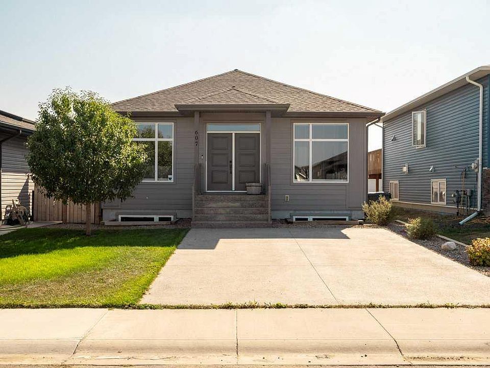 2018 bungalow in Coaldale with 1,514 sq ft on main, high ceilings, open layout, three bedrooms, and two bathrooms including primary suite with walk-in closet and ensuite. Bright kitchen with modern cabinetry, central island, and ample storage. A super functional mud room/laundry combo on the main. Basement with high ceilings and large windows, partially finished, framed for three more potential bedrooms and roughed-in bathroom, offering room to grow and build equity. Fully fenced low-maintenance backyard perfect for entertaining with hot tub, fire pit, and double detached garage with alley access. Don’t miss this opportunity!!! comfort, style, and future potential all in one home. Schedule your showing today!