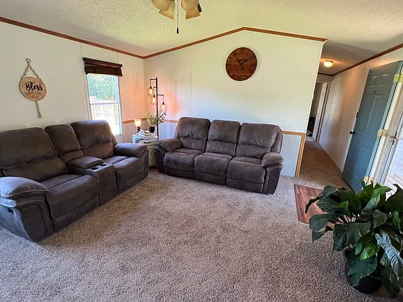 Very well maintained 2001 Mobile Home on four spacious lots. Three bedrooms, two full bathrooms, large 22'x43' covered, cemented carport with front and back wood decks! Large fenced in backyard with a separate area for a garden. Master bedroom has a walk in closet! The laundry room is next to kitchen perfect for pantry space!