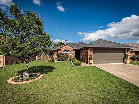 Move-in ready and awaiting its new owners! Featuring 3 bedrooms, and 2 bathrooms, 2 car garage and a super convenient storage shed in the backyard. The kitchen is a standout, boasting stunning granite countertops, custom cabinetry, ceramic tile flooring, and sleek stainless steel appliances, complemented by a cozy breakfast bar. The dining area flows seamlessly from the kitchen, making it ideal for gatherings and celebrations. Step into the expansive living room, perfect for hosting family and friends, or relax under the spacious covered patio in the backyard. You'll find vinyl flooring in the living room and hallway, while the bedrooms are comfortably carpeted. Large primary bedroom that offers a generously sized walk-in closet, for all your storage needs. For a personal tour of this wonderful home, reach out to the listing agent, Lawrence Hargrave with RE/MAX Professionals at 580-647-3245. Don't miss out on this opportunity!