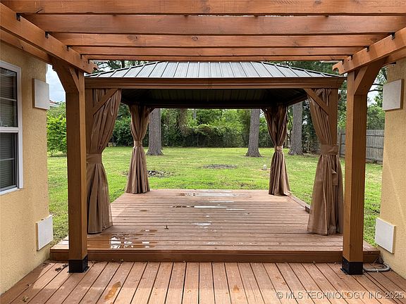 MAKE THIS BEAUTY YOUR NEXT HOME! Lots of room in this 3 bedroom home. Large formal living room and a formal dining room. The Chef's kitchen has gorgeous custom made cabinets and opens onto the formal living room with a fireplace, built in bookshelves and a magnificent mantle. There is a Florida room off the living room that opens onto a large patio and deck with a curtained pagoda and fenced in back yard. The primary bedroom has an on suite with a whirlpool tub and a separate shower. The utility room is off the large closet area for convenience. This home has ample closets for storage. There are new light fixtures and Fans and a newly insulated attic. There is also a custom security system in this home. The two car garage has lots of shelves for storing tools and boxes. Call for your showing today!
