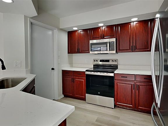 Beautifully updated 3-bedroom, 2.5-bath home featuring new carpet, updated electrical, and a stylish kitchen with quartz counters, cabinet pulls, and a stainless steel appliance package. The primary bath includes a refaced vanity with new top and mirror, while bath 2 offers a new vanity, mirror, and toilet. A refreshed half bath with a new sink completes this move-in ready home!